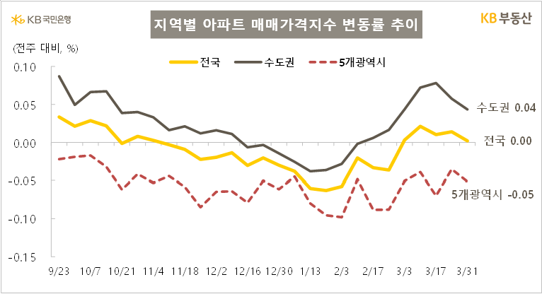 매매가격증감률이 수도권이 0.04%로 전주 대비 하락하였습니다.