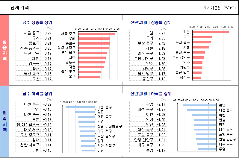 전세가격 상승지역 / 하락지역