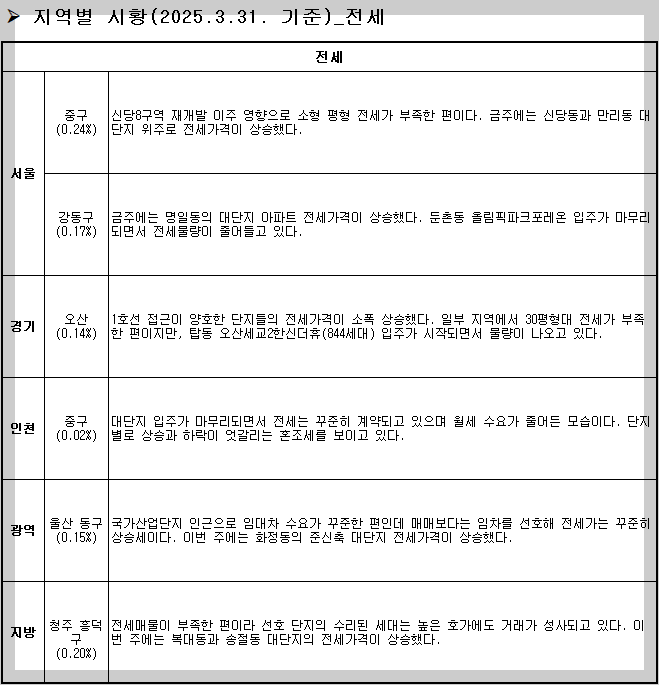 울산, 강원, 충북이 소폭 상승하였고, 나머지 지역들은 모두 유지 및 하락을 기록했습니다.