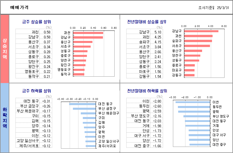 상승은 강남구, 용산구, 서초구, 성동구의 상승이 높게 나왔습니다.
